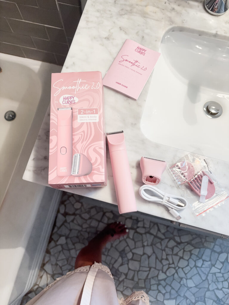That’s why today I want to share my favorite at-home grooming hacks for moms who need simplicity, speed, and results. And the best part? You can do it all with just one tool: the Happy Curves Smoothie 2.0 2-in-1 bikini and body electric trimmer.