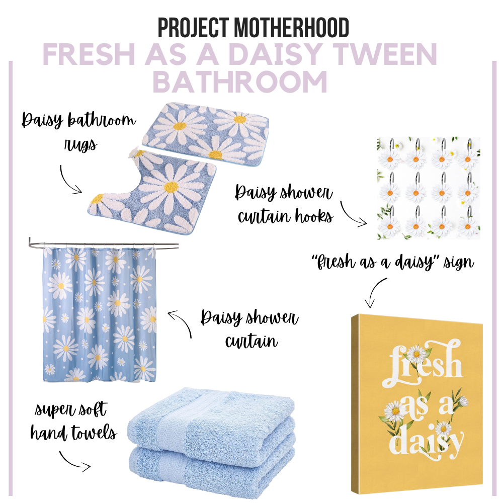 One of the best things about decorating a tween bathroom is that you don’t need expensive custom pieces to make a big impact. Amazon has incredible options for daisy themed bathroom accessories that look high-end but stay budget-friendly—perfect for parents who know tweens’ tastes can change quickly!